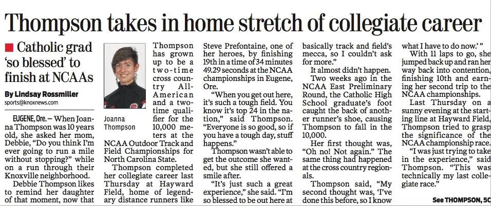 Thompson completed her collegiate career last Thursday at Hayward Field, home of legendary distance runners like Steve Prefontaine, one of her heroes, by finishing 19th in a time of 34 minutes 49.29 seconds at the NCAA championships in Eugene, Ore.